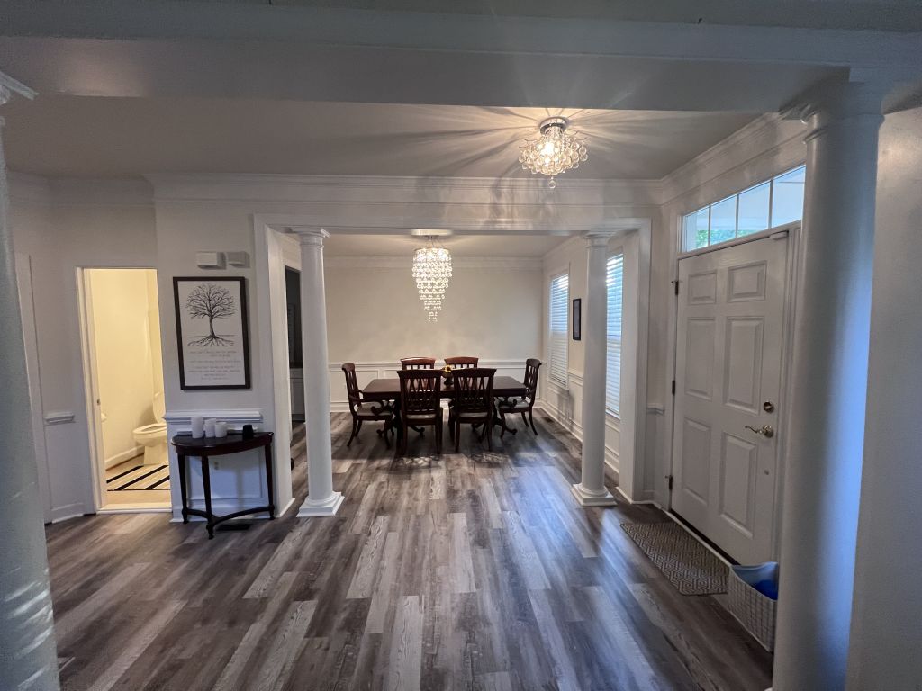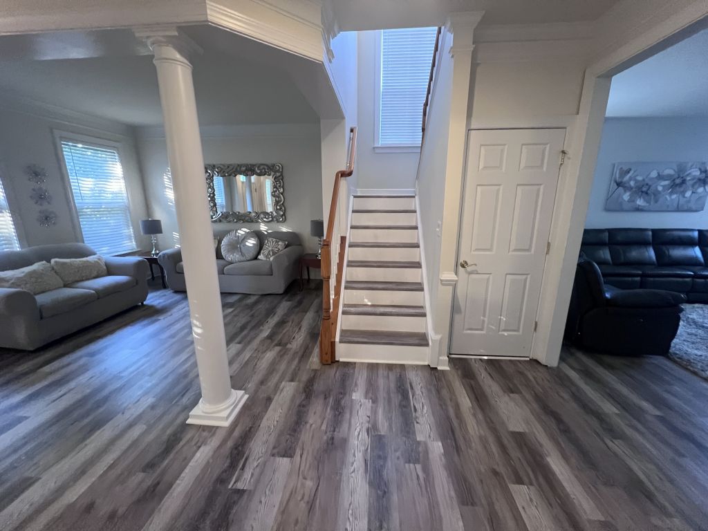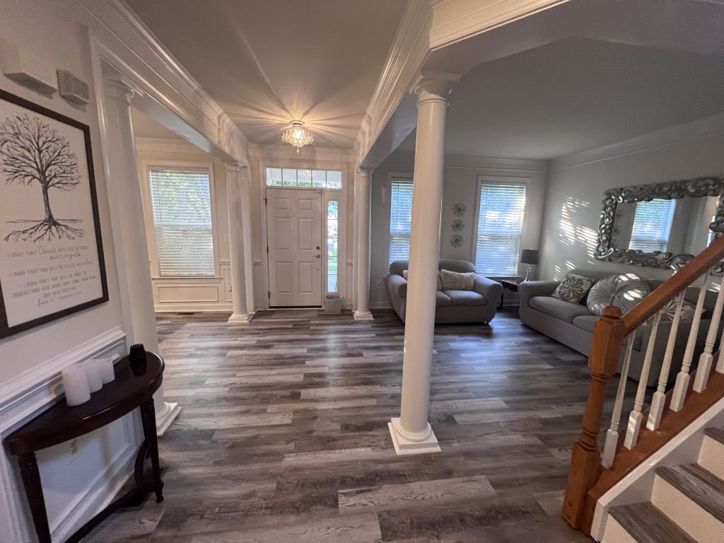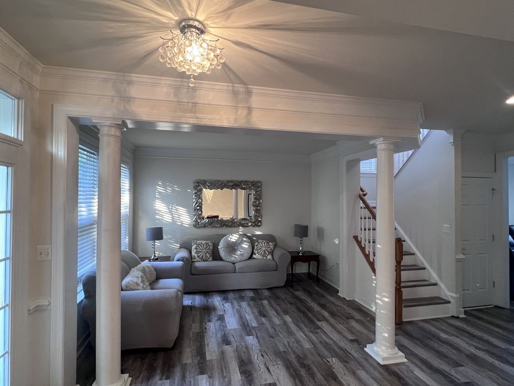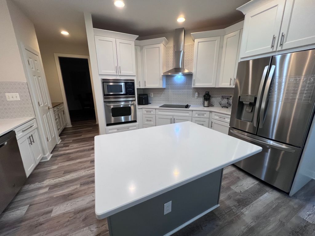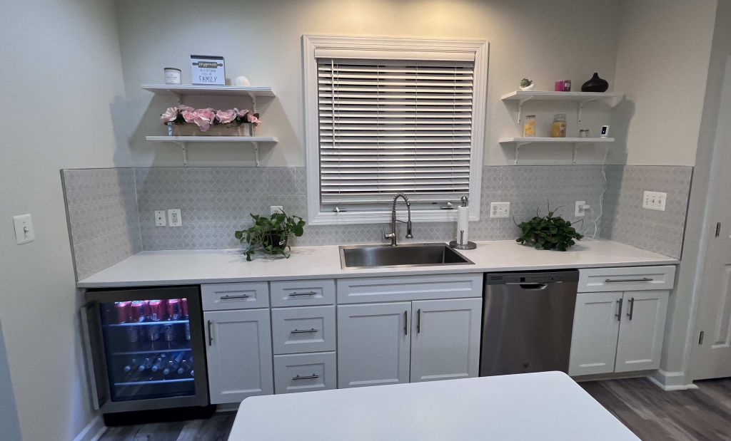 Ladysmith Village, RUTHER GLEN. This beautiful home is located in sought after Ladysmith Village, in Caroline County, VA. This exquisite home is just loaded with upgrades including a wall oven, separate cook top, propane fireplace, crown molding, utility sink, finished basement with kitchenette, private entrance, and large storage area. The property features a beautifully renovated kitchen with quartz countertops, new cabinets, stainless steel sink, and a built-in beverage cooler. The owner’s bath is simply luxurious and features oversized floor and wall tile, stand-alone tub, and custom shower. The sub-division features a walking trail, Dog Park, library, YMCA, pool, fitness center, and event space. This Atlantic Builders home was built to last and is move in ready. VACV2008222