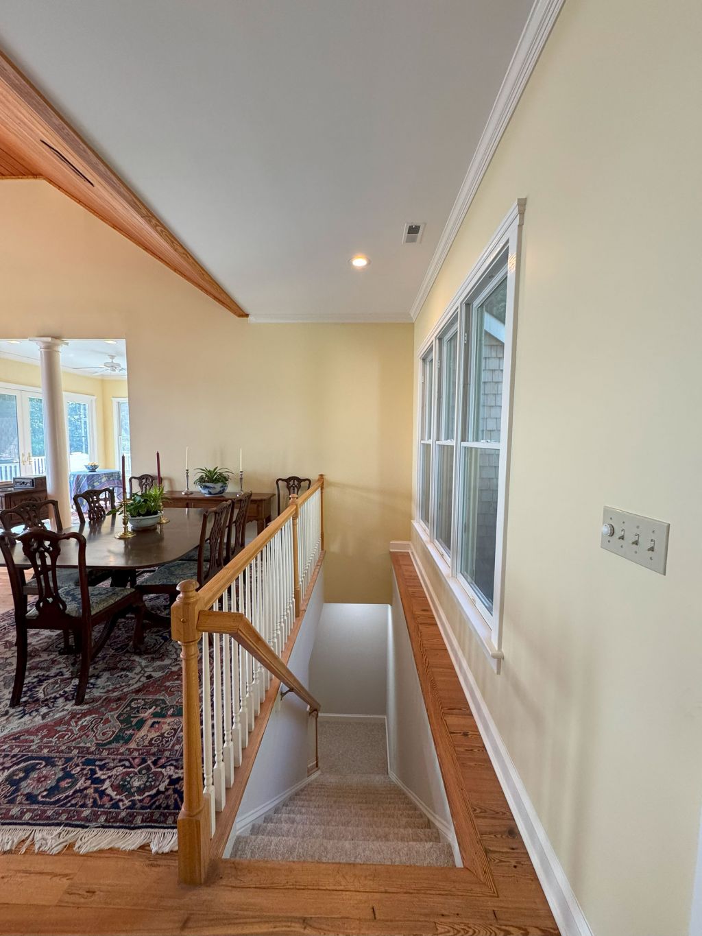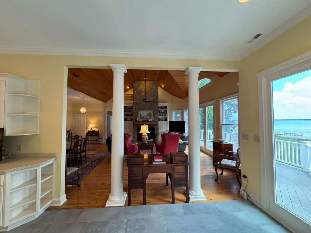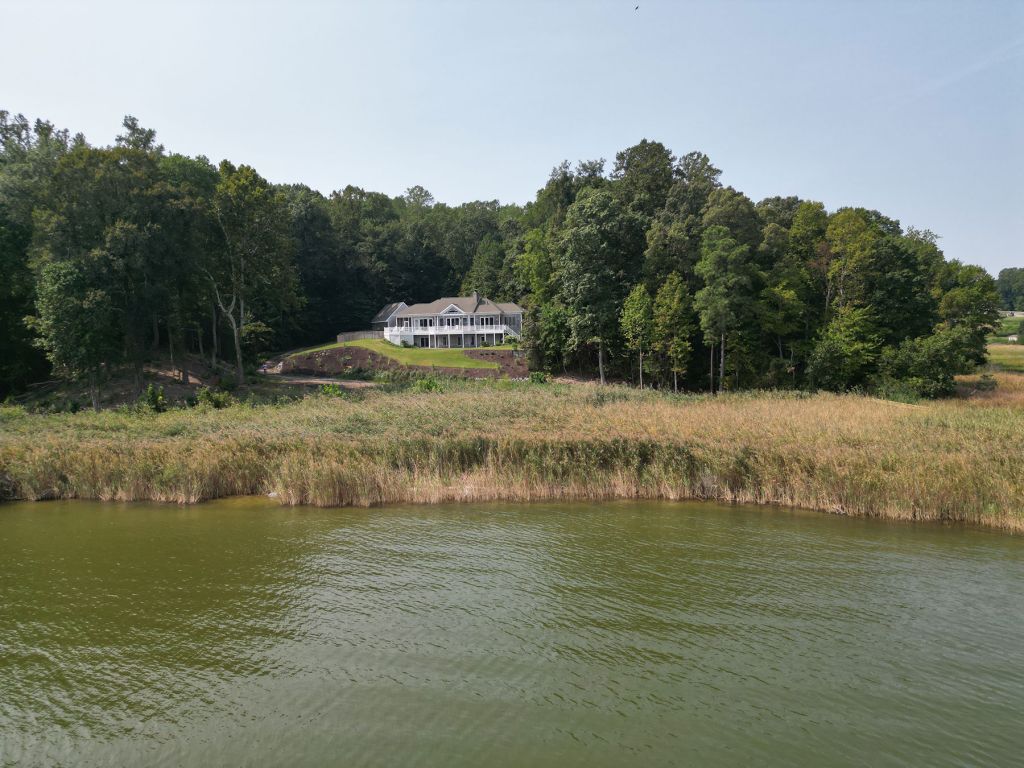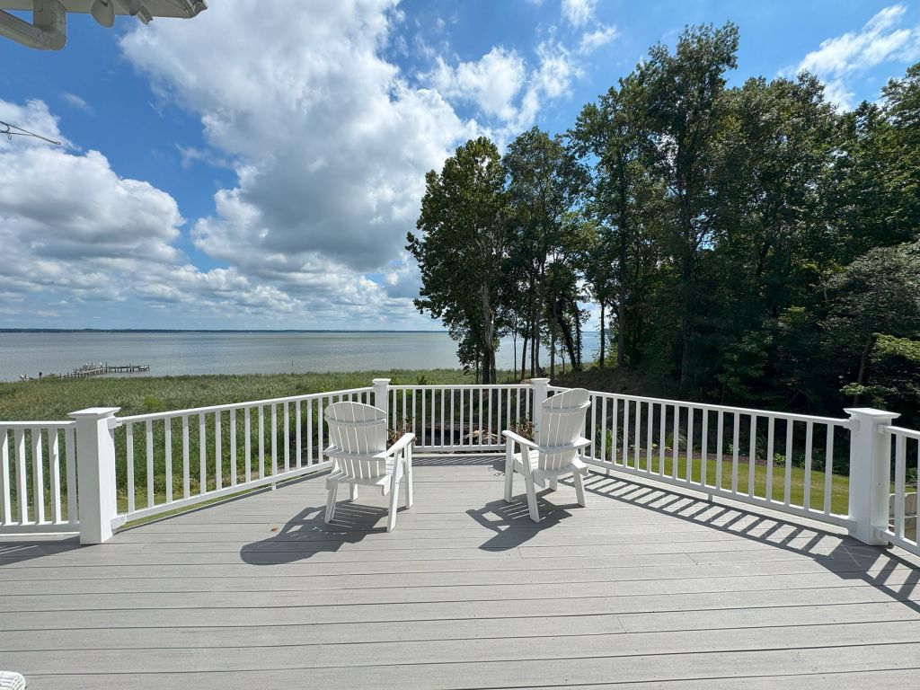 Laytons Landing, LANEVIEW. Only one hour from Richmond, this unique, private 8.0-acre property boasts 275 feet of river frontage. The property consists of an elegant, but casual architecturally designed home on an 8-acre lot, the adjacent 8.6-acre lot zoned for a single-family residence is also for sale. The property offers spectacular news of the river. Looking southeast, the view exceeds six miles. The home consists of two levels, the upper level offers a living room, primary bedroom and adjacent bath, gourmet kitchen, laundry room/pantry and a three-car garage. The lower level consists of a Jack and Jill bathroom, two bedrooms and a living room. The living room could be used as a 4th bedroom. Adjacent to the living room is an office.