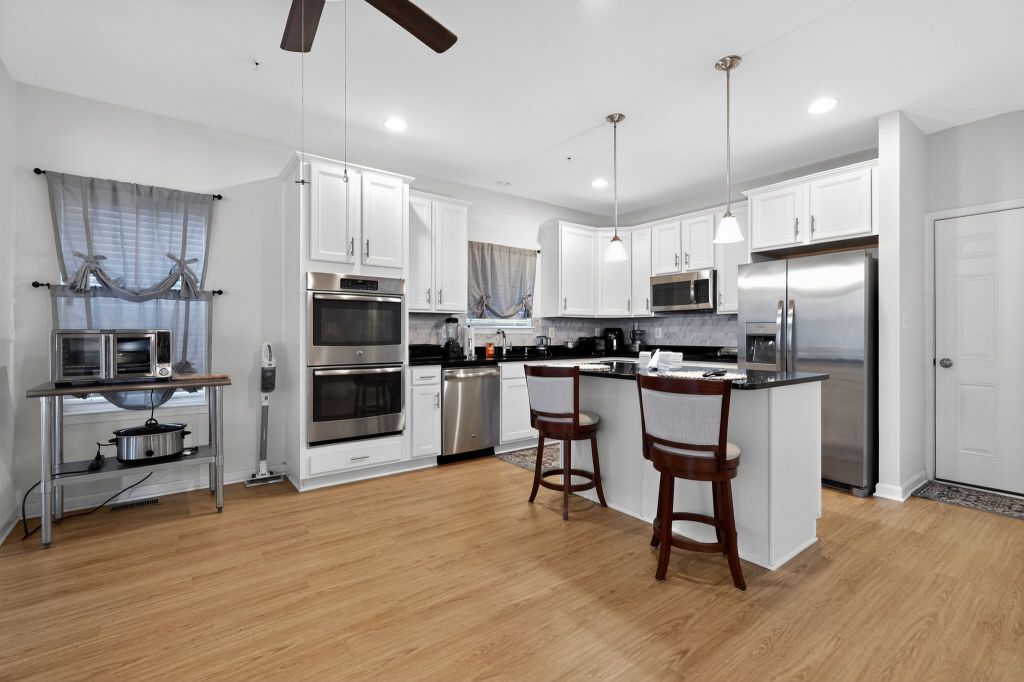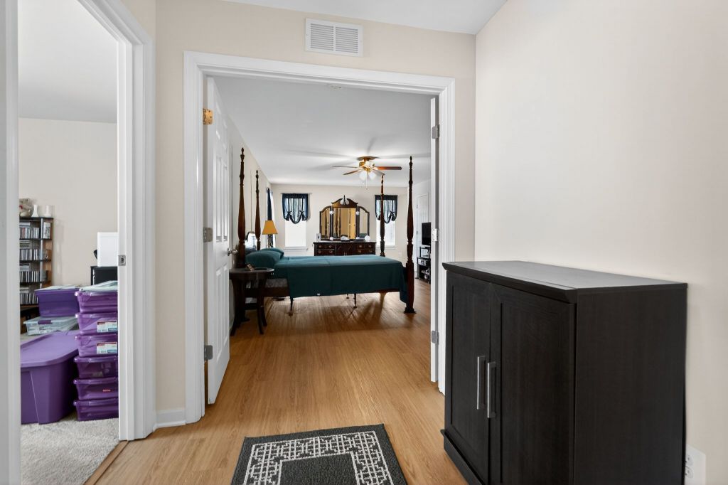 Eagles Pointe, WOODBRIDGE. UNDER CONTRACT - Enjoy the beauty of this two-story home with Victorian facade. Inside you will enjoy a modern kitchen with a pantry, granite countertops, new electric cooktop, newer refrigerator, and wall ovens rarely used. The main level has a seamless open floor layout with scratch resistant and waterproof flooring that is easy to clean. Upstairs is the oversized primary bedroom retreat with room to fit a king-size bedroom set. Open the double doors to the owner's bath complete with a soaking tub and separate shower. Additionally, there are three spacious carpeted bedrooms and a hall bathroom. The lower level boasts a fully finished basement with recreation room. Here, you will find a fifth bedroom and adjacent bathroom. There is also a kitchenette area that may function as a wet-bar. Keep the climate controlled with the Carrier HVAC that was installed four years ago. The expansion tank of the hot water heater was replaced in 2025, providing hot water for years to come. The fully walkout basement has a stone paver patio where you may sit and enjoy the yard that backs to peaceful woods. Never worry about caring for the aluminum fence with a maintenance-free finish.
