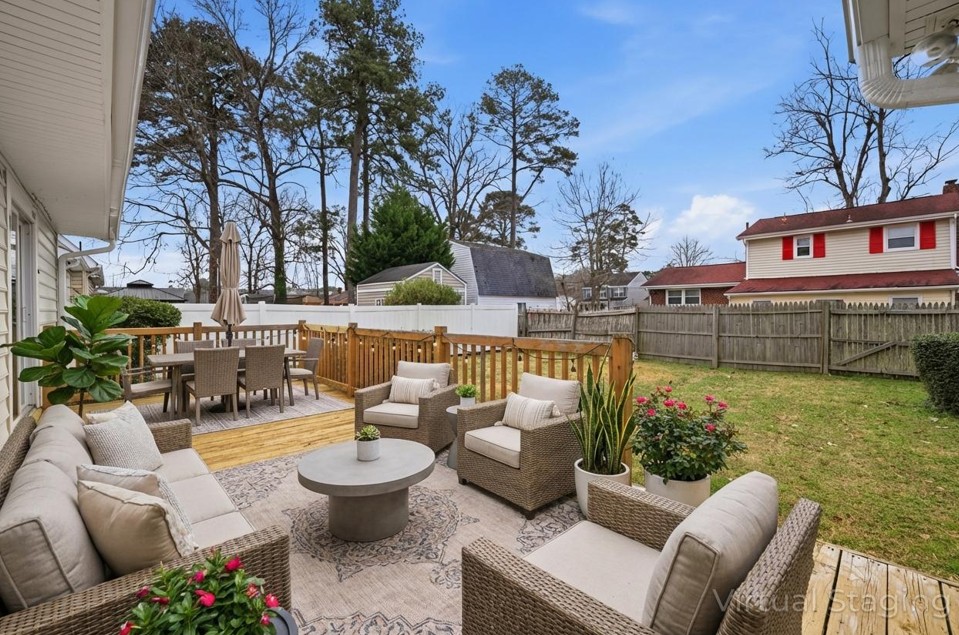 Norfolk Highlands WA, CHESAPEAKE. This well-maintained Chesapeake home features 3 bedrooms, 1.5 bathrooms is ready for personal touch! This property features a living room with fireplace, kitchen which includes an electric range, refrigerator and dishwasher, dining nook that can serve as an extra living space or playroom and a dedicated laundry room. The primary bedroom has an en-suite bathroom and access to the large backyard with spacious deck - perfect for gatherings of all kinds. This home has ample closet space, ceiling fans, and a large storage shed included. It is conveniently located near schools, shopping, and amenities. Some rooms feature virtual staging. Contact us to schedule a showing today and lets make this house your dream home!
