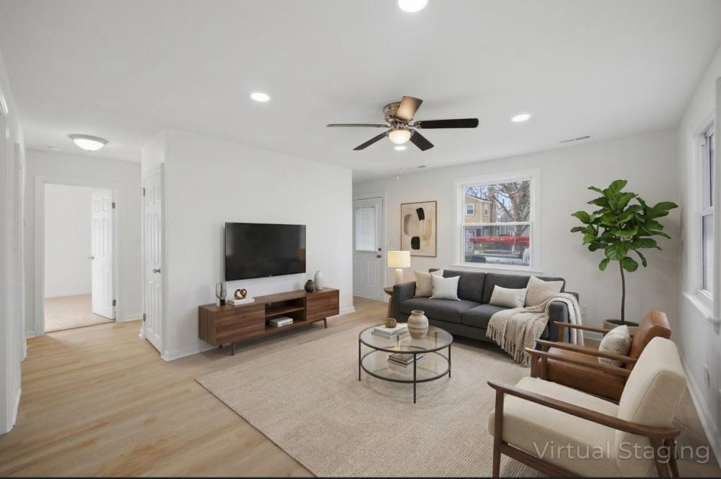 Norview Heights, NORFOLK. Check out this beautifully renovated Norfolk home with 3 bedrooms, a Bonus Room and 2 bathrooms. The open living and dining area flow into the kitchen which includes a new SS electric range, dishwasher, microwave and dedicated laundry closet. The main floor also features 2 spacious bedrooms and 2 full bathrooms. Upstairs, you'll find 2 large rooms – perfect for bedrooms, home office, playroom and more. The home has new paint and flooring throughout, a generous layout, ceiling fans, updated lighting and ample closet space. Step outside to a large, fenced yard with a front and side porch. Conveniently located near schools, shopping, and more. Schedule a showing today! Property features some virtual staging to highlight the home's potential.