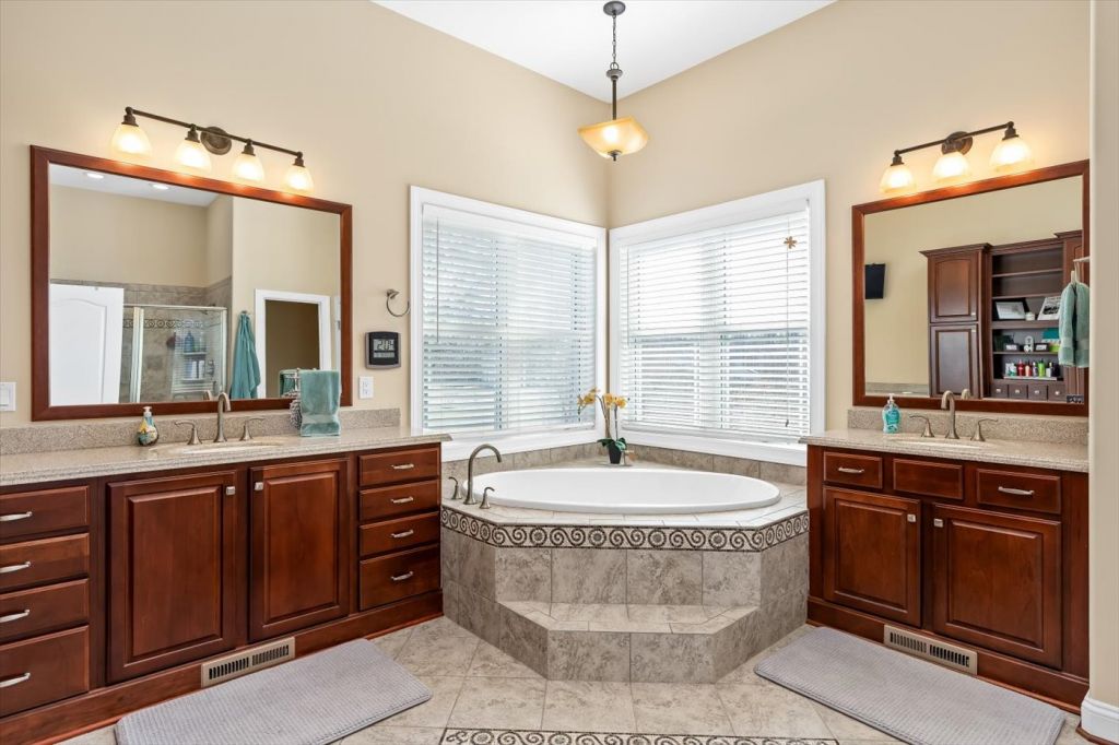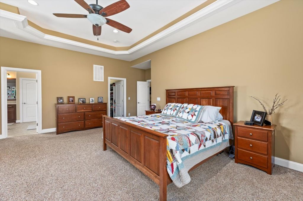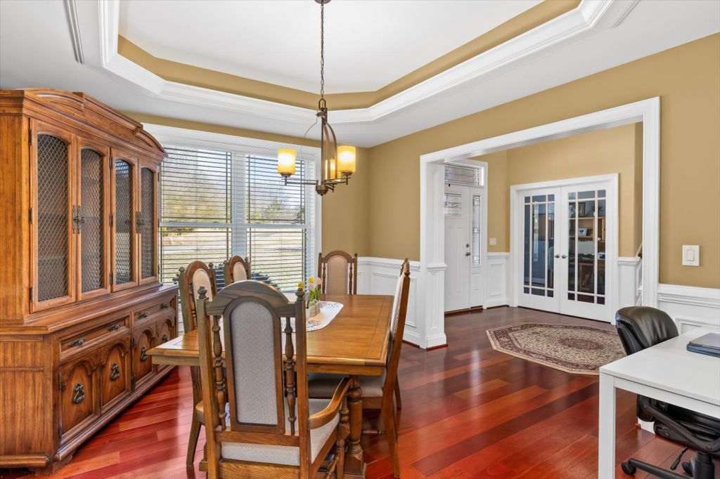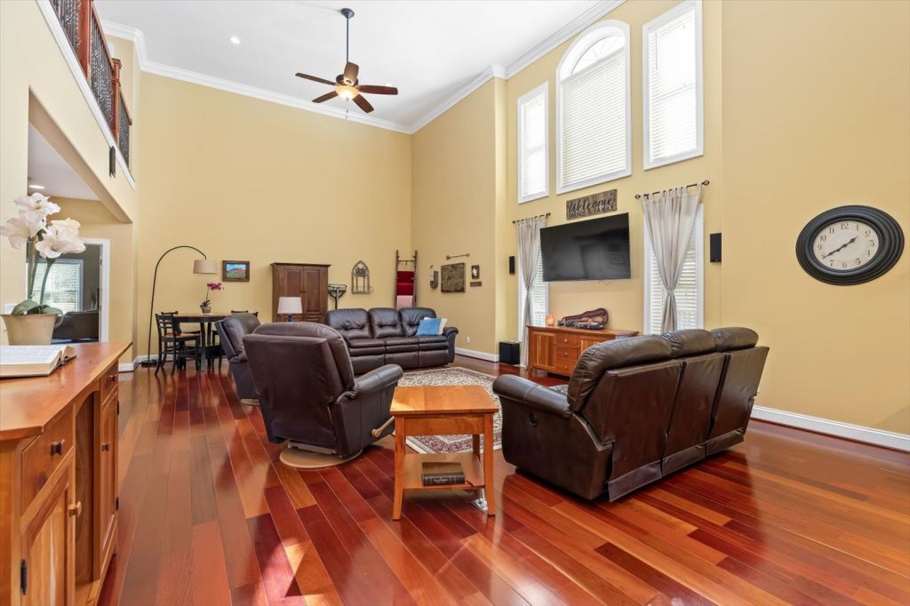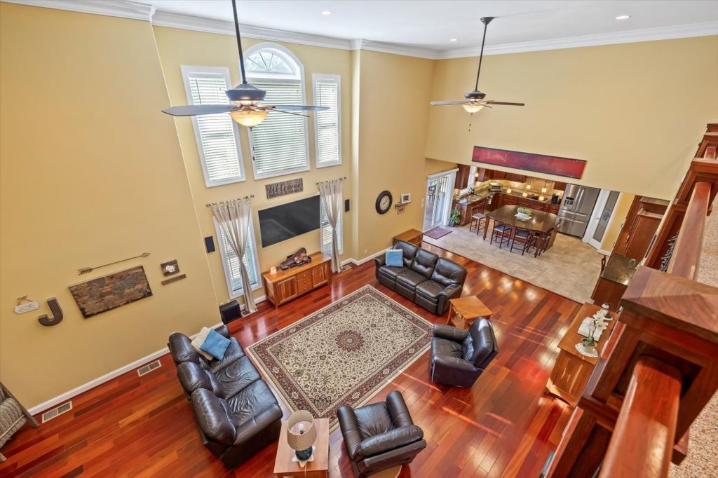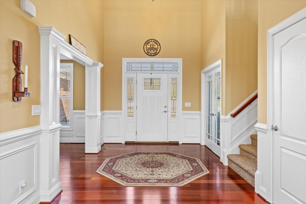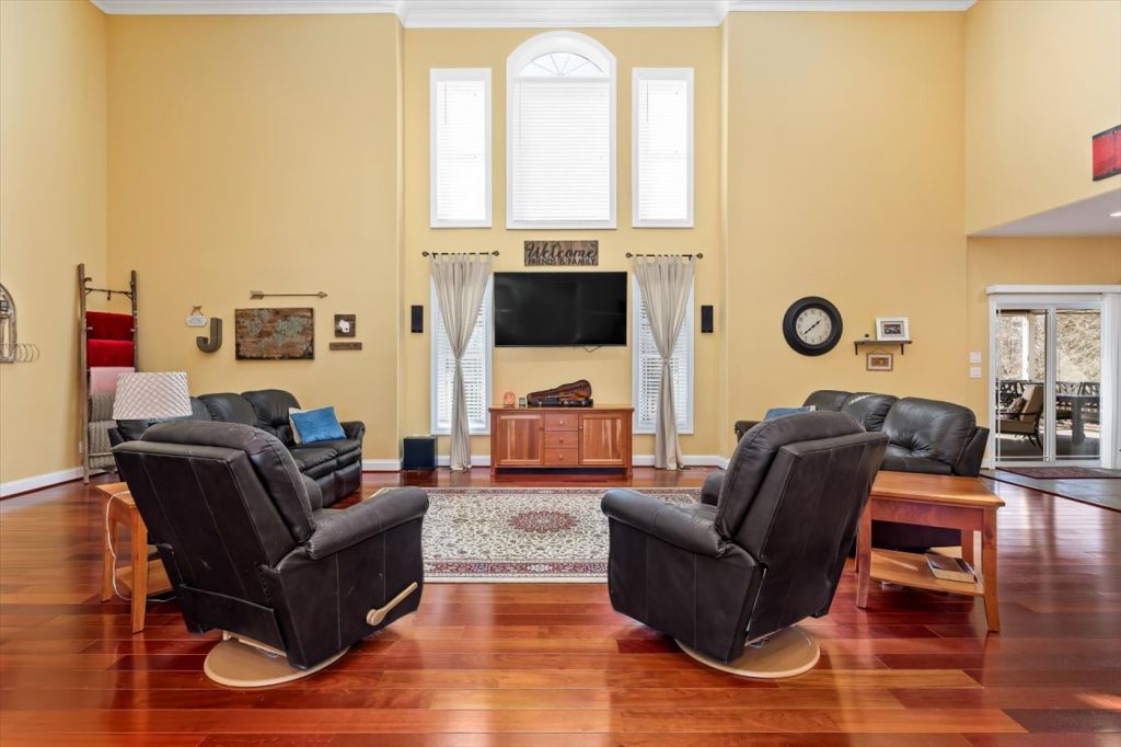 Ni River Station, Fredericksburg. Private retreat on 24+ acres in Fredericksburg! This custom-built home offers over 4,200 sq ft, 4 bedrooms and 4.5 bathrooms, and high-end finishes including Brazilian cherry hardwood floors, oversized trim, and solid core doors. The spacious kitchen and living areas feature built-in surround sound and modern wiring throughout the home. The primary suite includes elegant tray ceilings with accent lighting. An unfinished basement with 11-ft ceilings offers incredible potential for additional living space. Enjoy peaceful outdoor living with river frontage, a private pond, and wooded acreage perfect for wildlife watching, fishing, and recreation—all just minutes from shopping, dining, and commuter routes.