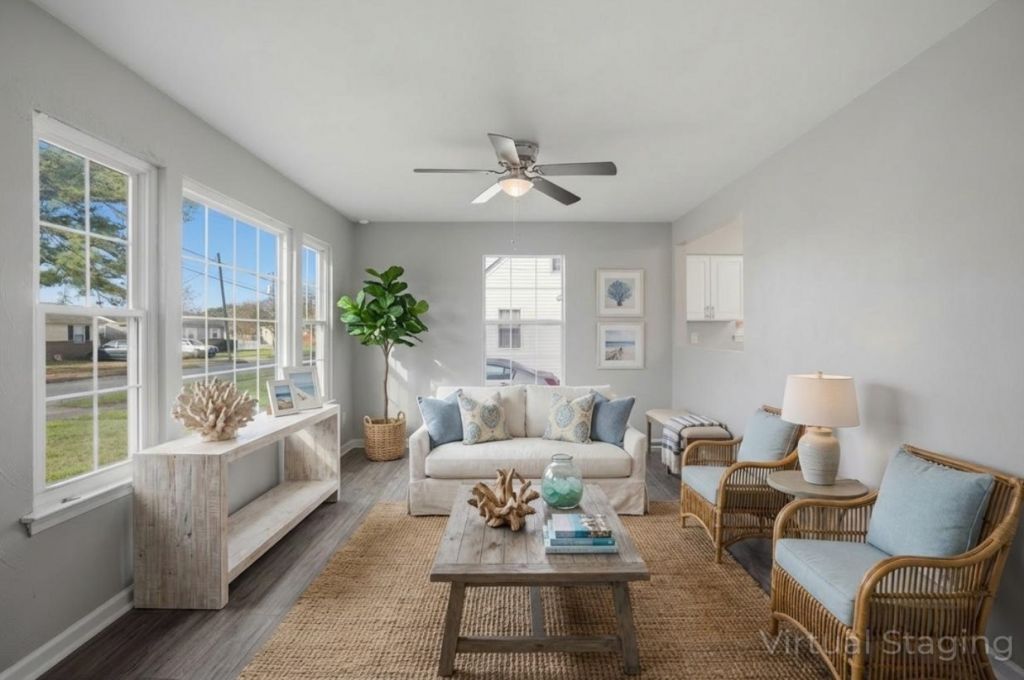 Coronado, NORFOLK. Check out this fully renovated Norfolk home featuring 3 bedrooms, 2 bathrooms and a bonus room! Enter your living room, dining room and kitchen with SS electric range, dishwasher & microwave and laundry room. Down the hall you’ll find 2 bedrooms and 1 full bathroom. Upstairs you’ll find your 3rd bedroom, 2nd bathroom and bonus room – the prefect space for a luxurious primary suite! Enjoy new paint & flooring throughout, spacious layout, ceiling fans, updated lighting, coxy front porch and a large backyard with detached 1 car garage. This house is close to schools, shopping and more. Don’t miss your chance — schedule your showing today! Property has some virtual staging to showcase home’s potential.