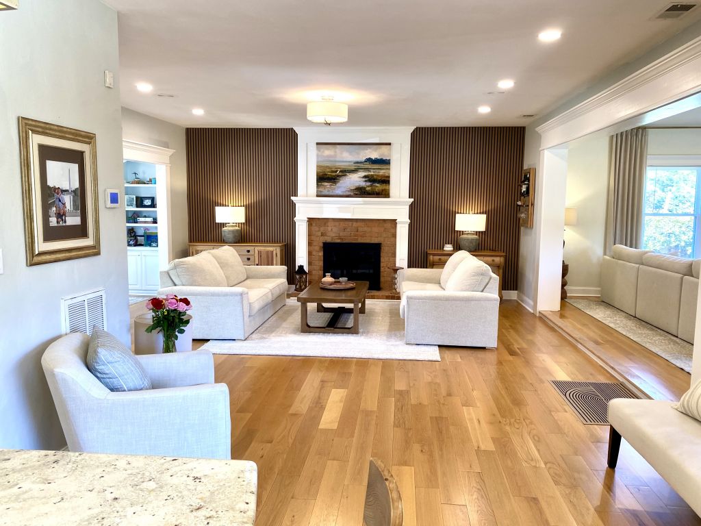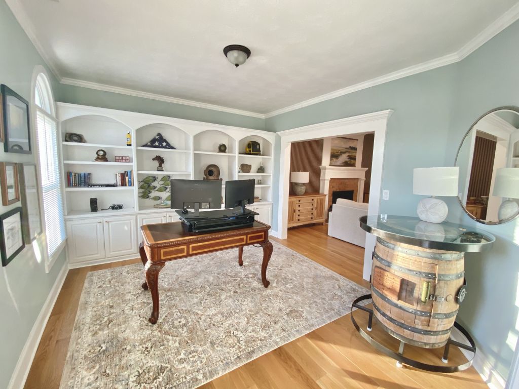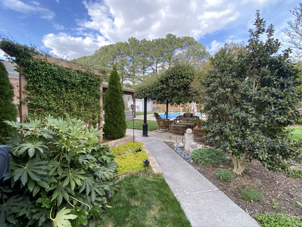 Highgate Greens, Virginia Beach. This impressive all brick home sits on nearly 1/2 an acre & showcases updates throughout! Designed with an open floor plan, it features a home theater, kitchenette, & exceptional space for everyday living & entertaining. The main level offers a bedroom with a separate entrance from the main house. Great for guests while the second floor includes 5 additional bedrooms.The well appointed kitchen features abundant cabinetry, large island, double ovens & an instant hot water dispenser. The primary suite has dual vanities, separate closets, and a luxurious bath with a standalone tub and walk-in shower. Enjoy a private backyard with lush landscaping, a saltwater sports style pool irrigation system. Minutes to bases, Sandbridge, & the Oceanfront!