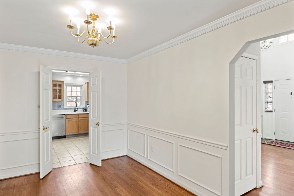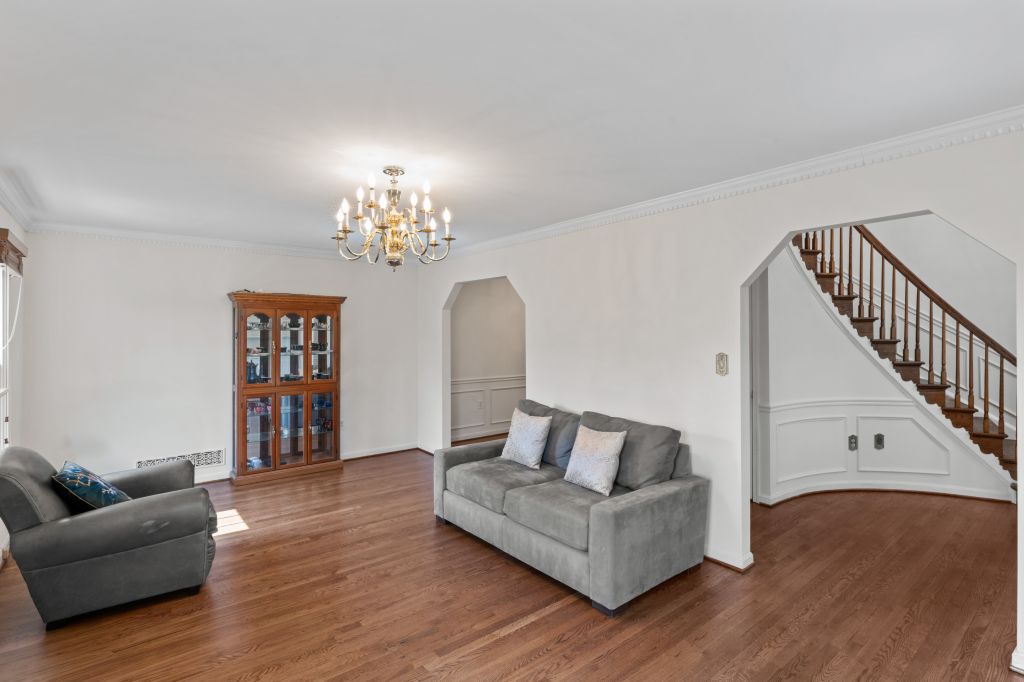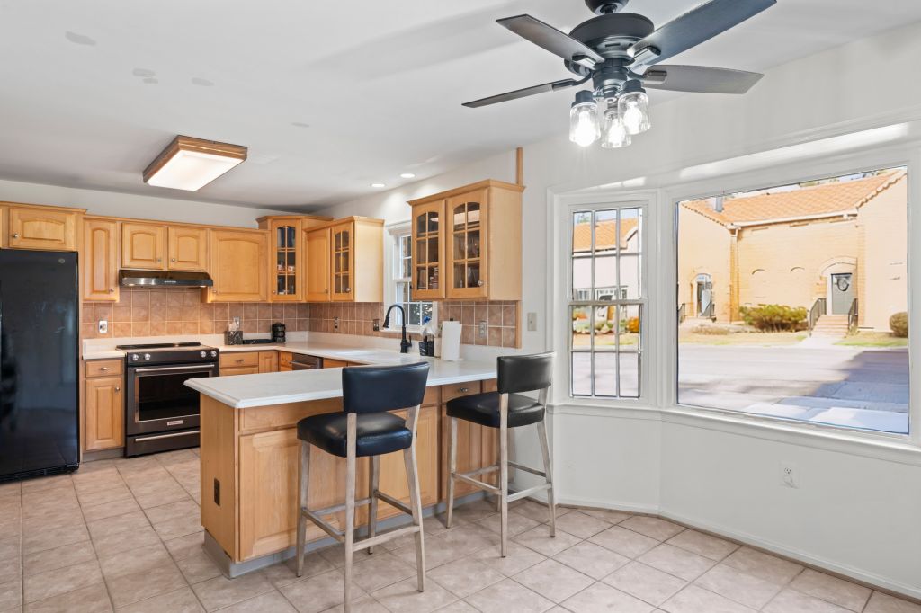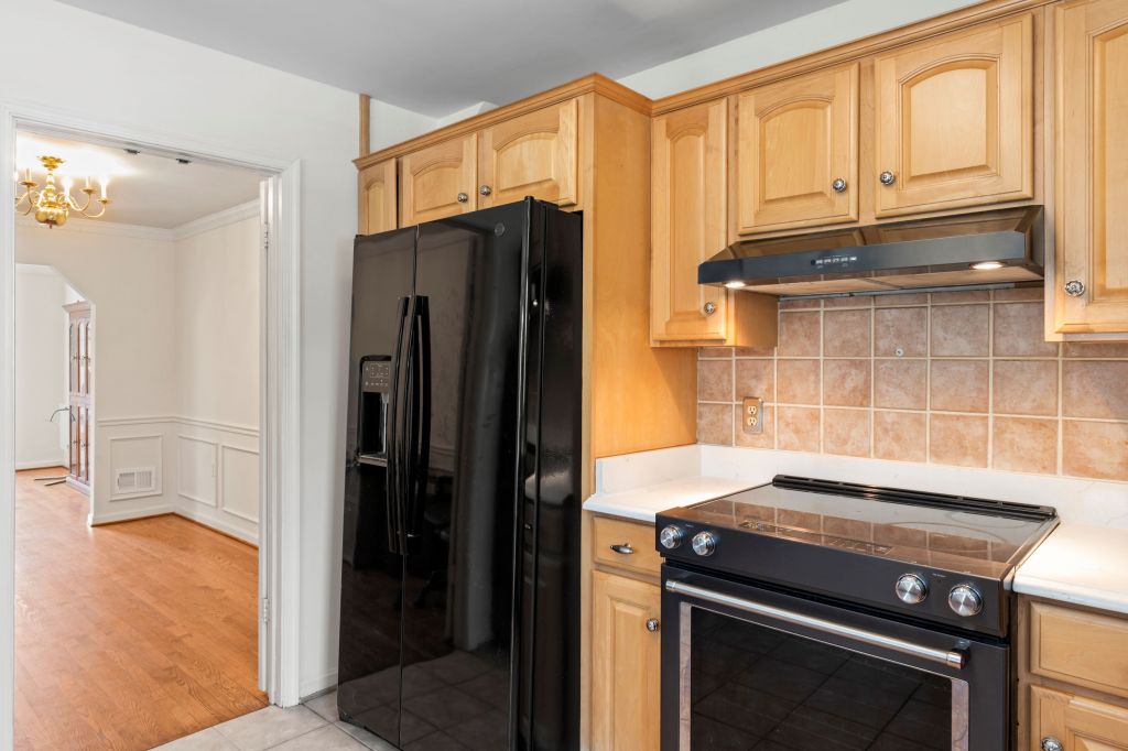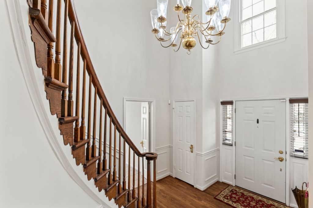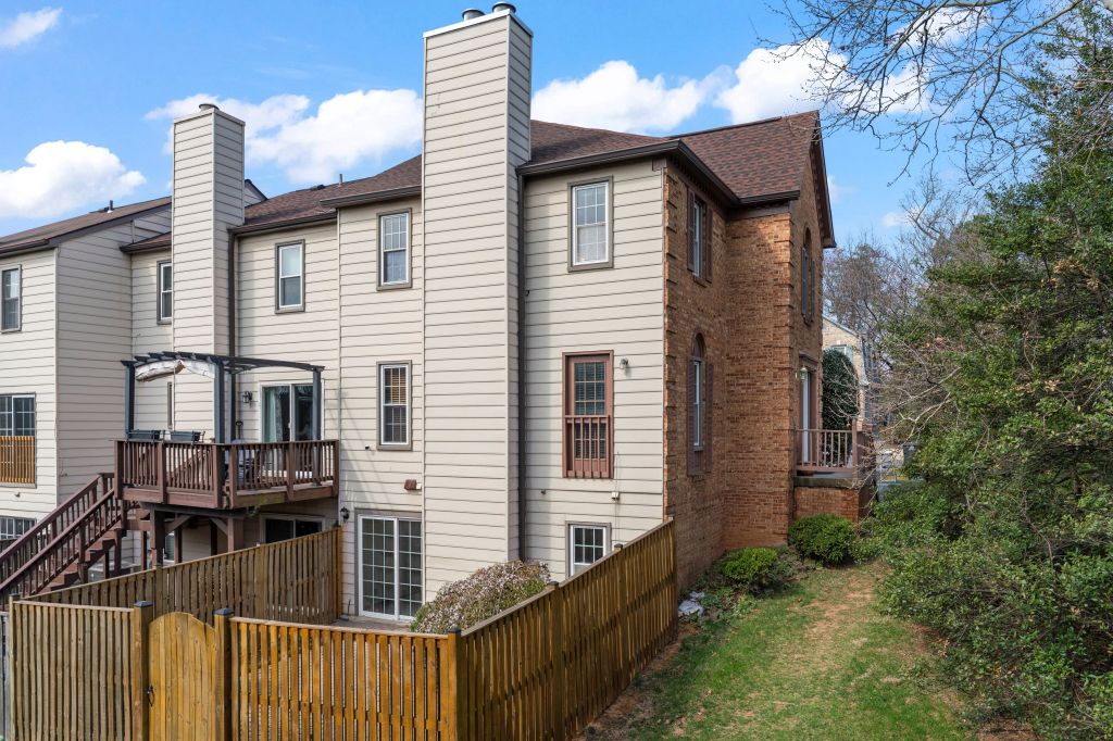 Lakeford Community Association, Falls Church. End-unit brick townhouse with 3 levels, 2,684 SF, 3 beds (top level), 3.5 baths. Dramatic 2-story foyer w/spiral wood staircase, restored hardwoods in foyer/living/dining, carpeted bedrooms, tile kitchen/powder/basement. Updated kitchen appliances including 1" marble-look counters, maple cabinets; remodeled baths with new vanities & toilets. Finished walk-out basement to patio, new basement freezer and kitchen Levella beverage fridge conveys. New HVAC, air handler (4yrs), architectural roof with gutters (2019), ADT cameras convey, Fios fiber. Two reserved parking spaces, wood venetian & simulated wood blinds throughout convey, front landscape lighting, just painted all 3 levels—move-in ready. Invoices for major appliances/HVAC/roof. Click Here for Virtual Tour