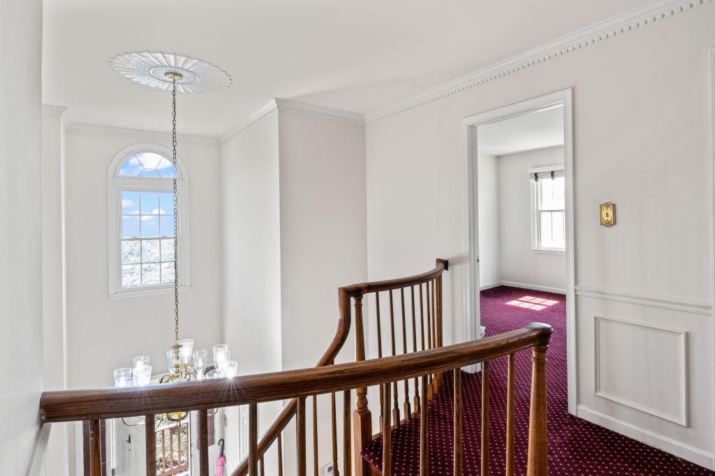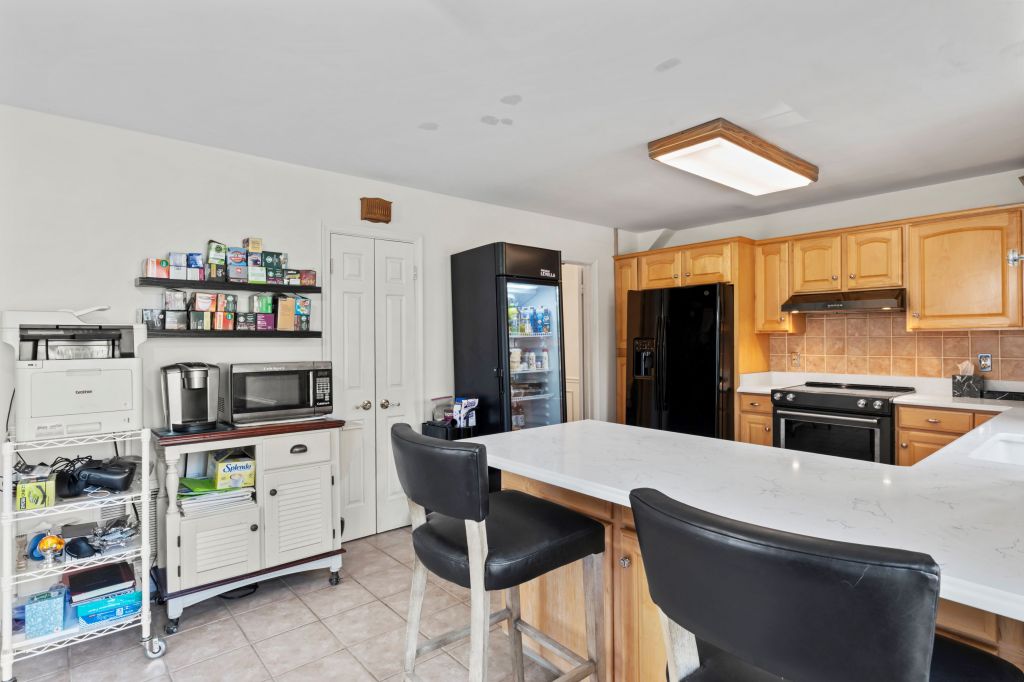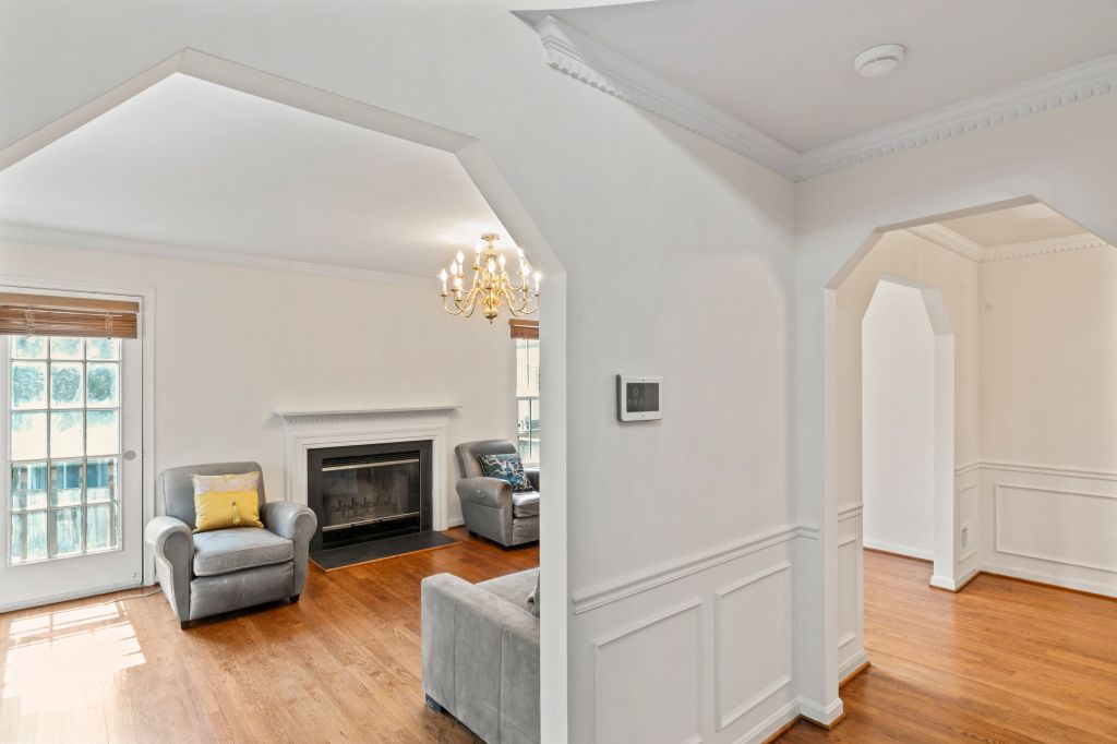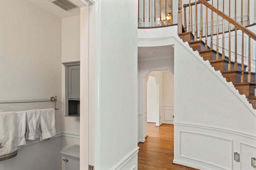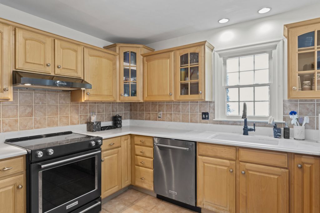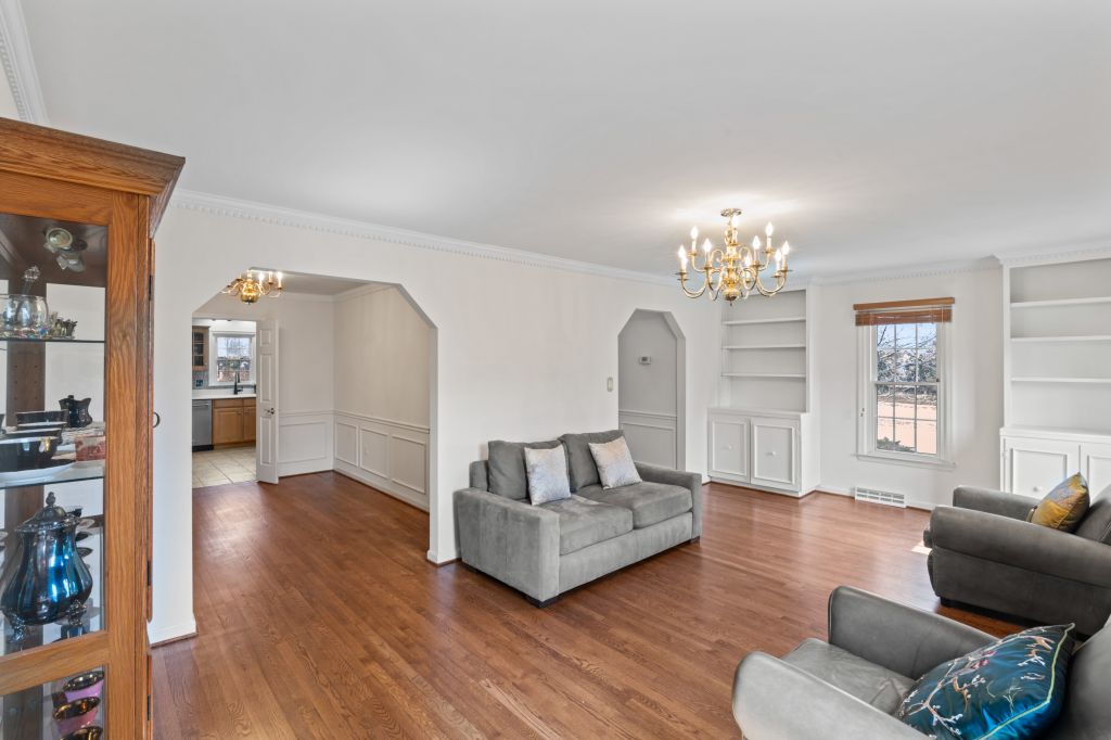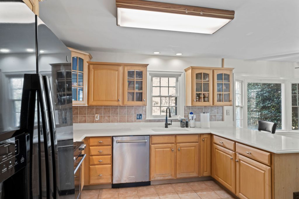 Lakeford Community Association, Falls Church. End-unit brick townhouse with 3 levels, 2,684 SF, 3 beds (top level), 3.5 baths. Dramatic 2-story foyer w/spiral wood staircase, restored hardwoods in foyer/living/dining, carpeted bedrooms, tile kitchen/powder/basement. Updated kitchen appliances including 1" marble-look counters, maple cabinets; remodeled baths with new vanities & toilets. Finished walk-out basement to patio, new basement freezer and kitchen Levella beverage fridge conveys. New HVAC, air handler (4yrs), architectural roof with gutters (2019), ADT cameras convey, Fios fiber. Two reserved parking spaces, wood venetian & simulated wood blinds throughout convey, front landscape lighting, just painted all 3 levels—move-in ready. Invoices for major appliances/HVAC/roof. Click Here for Virtual Tour