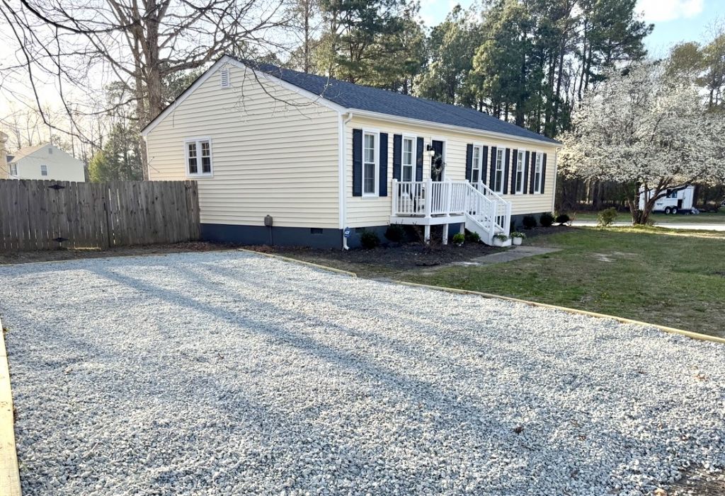 Kings Forest, RICHMOND. CORNER LOT and CURB APPEAL! Welcome to 6312 Cyrus Street in the Kings Forest subdivision. This beautifully renovated 1250 sqft ranch style home features spacious living with 4 bedrooms and 2 full baths. Freshly painted interior and updated throughout makes this single level property move-in ready! Once inside, the living area is a comfortable and inviting space for family entertainment or simply relaxing. Just steps away is a newly renovated bright kitchen featuring new cabinetry, quartz countertops, stainless range, microwave, dishwasher and new tile flooring with a pantry and laundry area. The primary suite offers an updated en-suite as well as a large closet, and new carpet. The additional 3 bedrooms are carpeted and offer the flexibility for a dedicated home office. The hall bathroom has been updated with LVC flooring and new cabinetry. Just out the back kitchen door is a newly redone deck with vinyl rails and 2 sets of steps. The deck overlooks a large private backyard enclosed with privacy fence making it great for kids to run and play, outdoor entertaining, gardening, or just enjoying some quiet time. The exterior features newer vinyl siding, replaced roof, gutter and double pane insulated windows. All exterior renovations were completed in 2024. Convenient to schools, restaurants, grocery and interstates. DON'T MISS OUT ON THIS OPPORTUNITY!!!