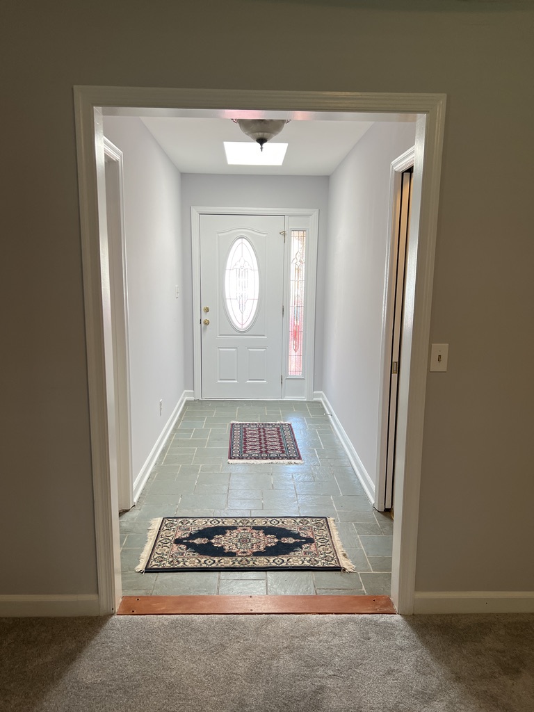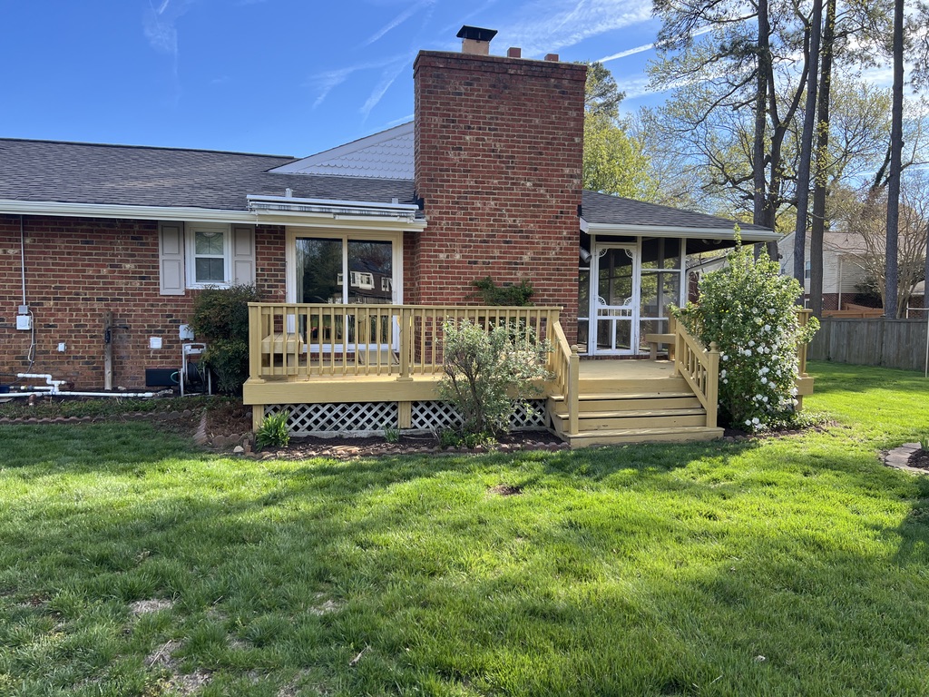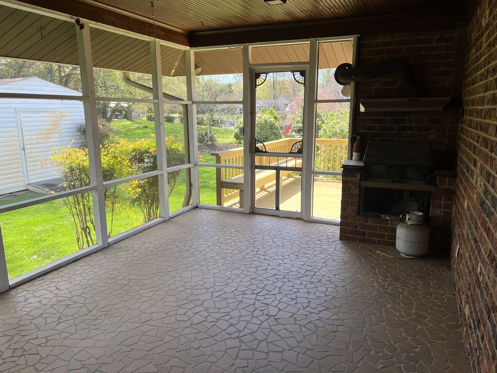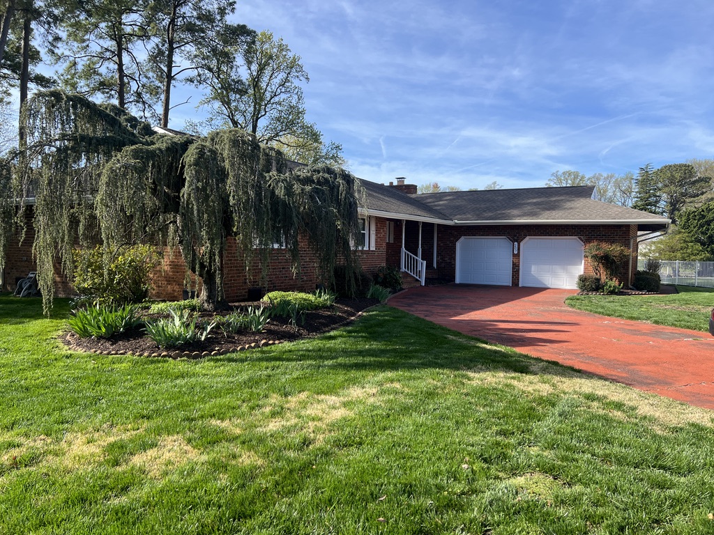 100084-River Point, HAMPTON. Unique floor plan single story 1800 sf brick ranch located on a water lot. The 3 bedroom floor plan separates the sleeping area from the living room, dining room, den and kitchen areas. 2 full baths in sleeping area and a ½ bath near the den. Recently painted inside and out w/ new carpeting and Bosch heat pump. 2 car garage w/ 2 tool rooms. Screened in porch and shed in heavily shaded area. Patio area w/ retaining walls near water. Beautiful fescue yard w/ numerous high-end trees including a Lace Leaf Japanese Maple and Weeping Cypress. Mulched beds w/ flowers and a variety of bushes and ground covers. Quiet, established neighborhood, just the right distance from main roads, the interstate, and shopping, restaurant and medical centers.