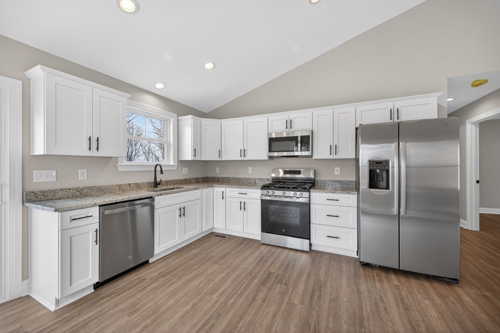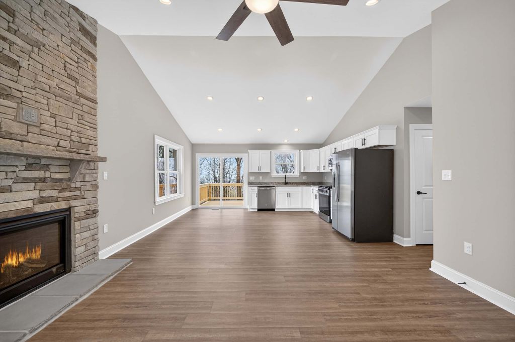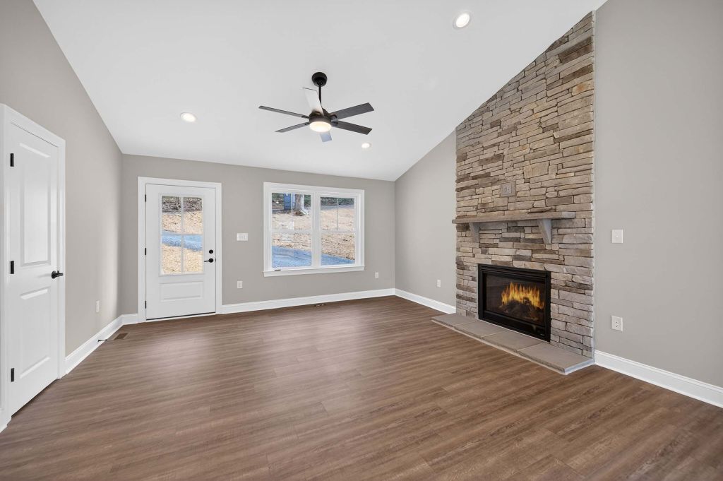 Blue Mountain, FRONT ROYAL. FANTASTIC 1,176 SQUARE FEET FLOOR PLAN WITH 3 BEDROOMS AND 2 BATHROOMS. LUXURY VINYL PLANK FLOORING THROUGHOUT, VAULTED CEILINGS IN THE KITCHEN, DINING AND LIVING ROOM. FLOOR TO CEILING STONE FIREPLACE WITH PROPANE LOGS. GRANITE COUNTER TOPS WITH UPGRADED APPLIANCES. 10' X 16' REAR DECK. FULL- UNFINISHED BASEMENT WITH BATHROOM ROUGH-IN AND PLENTY OF NATURAL LIGHT. MINUTES TO I-66 & ROUTE 50 FOR AN EASY COMMUTER EXPERIENCE.