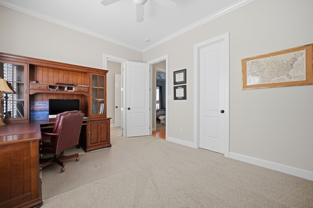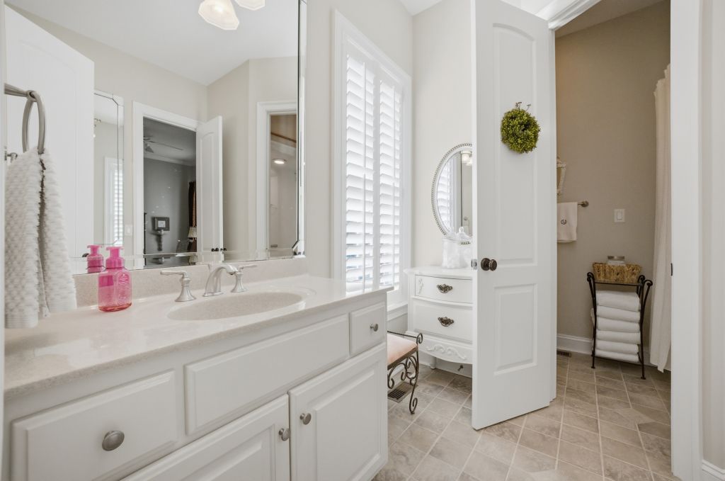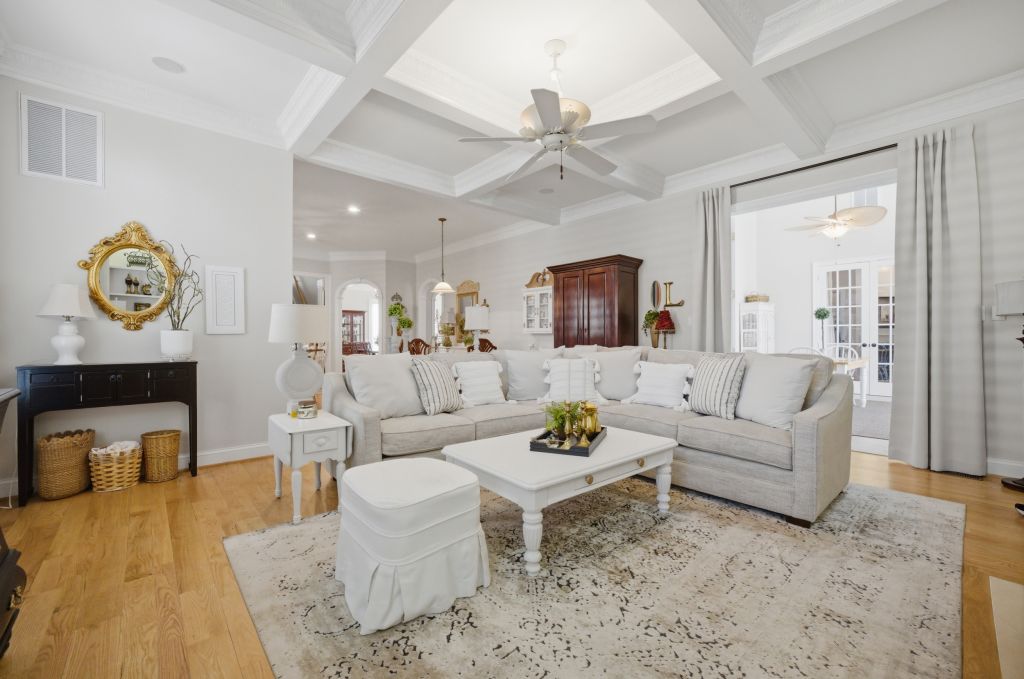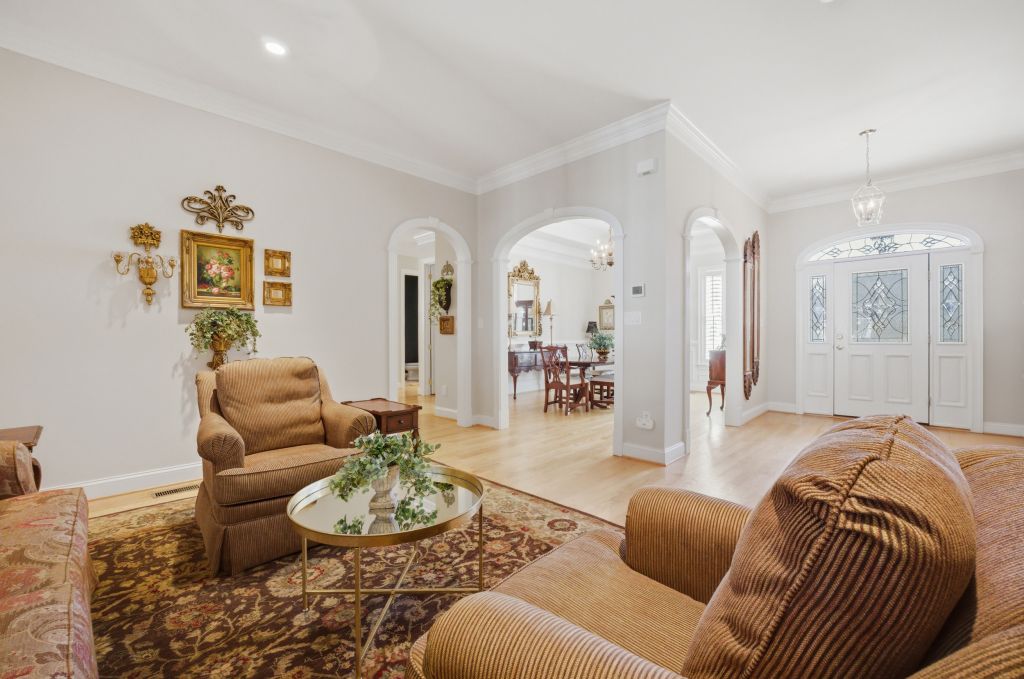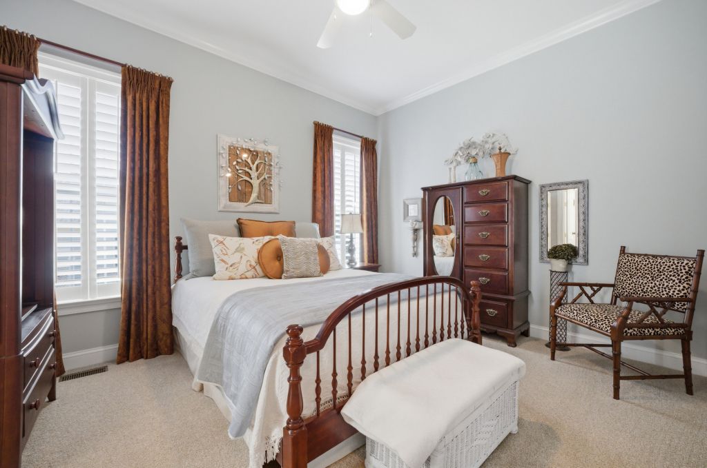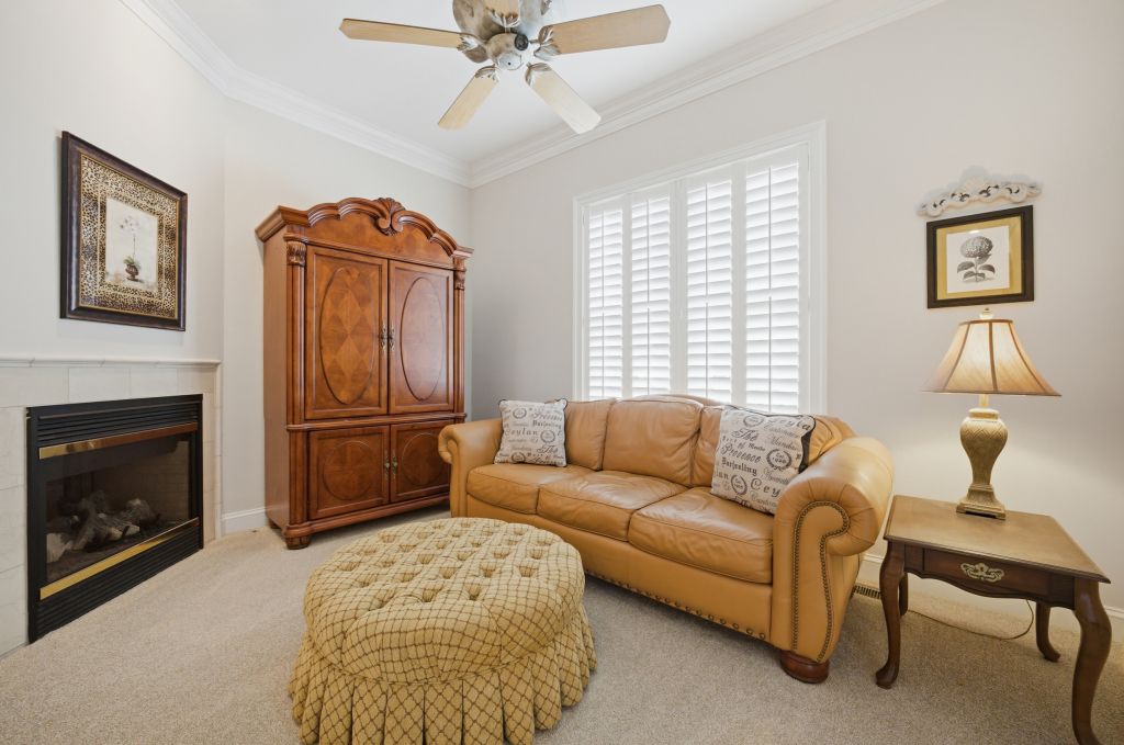 Ford's Colony, WILLIAMSBURG. This highly upgraded well maintained Parade of Homes custom home features neutral fresh paint, solid wood plantation shutters on every window, 10 foot ceilings & layered crown molding throughout. The spacious family room has built-in shelves with custom cabinets, a detailed coffered ceiling and warm gas fireplace. Your open concept kitchen features floor to ceiling solid oak cabinets, side by side refrigerator, five burner gas stove, builtin microwave, range and dishwasher. All Stainless. You will enjoy plenty of room for a table and chairs to have meals sitting down together here in the heart of the home. Your quiet master bedroom includes a sitting/TV area, trey ceiling & gas fireplace. Master bath has a large soaking tub with a gas fireplace & private water closet. There is also a walk in closet big enough for both spouses' wardrobes. Your bright sun room with skylights and vaulted ceilings leads to an oversized back deck with extra wide stairs & gas grill connection for family cookouts all year long. Two additional sun drenched first floor bedrooms each have ceiling fans and share a bathroom. It features a separate water closet & shower/tub combo with stone tile floors. Each bedroom has its own well lit walk in closet. The extra finished space above the garage can be a forth bedroom, an office or a exercise studio. You will have a finished two car garage which features a tiled floor with work bench & built-ins to keep tools organized and out of sight Storage for every holiday abounds in the widest and deepest floored well lit attic I've ever seen! Nottinghamshire features all the benefits of living in Ford's Colony. We have our own access gate & security patrols our neighborhood regularly. There is easy access to the swimming pool, tennis courts, playground, softball field, bocci court & basketball court. This location is incredibly convenient to Rt 199. You can be at either Walmart, Harris Teeter, Publix, New Town or CW in under 10 min. RIC is about 45 min.